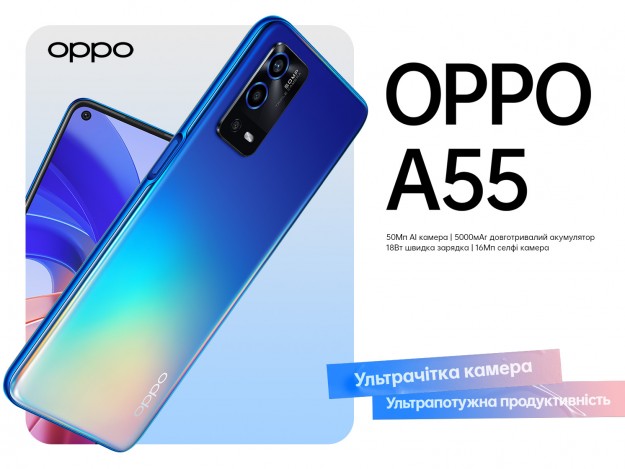 OPPO представляет смартфон A55 в УкраинеВедущий мировой производитель интеллектуальных устройств OPPO представляет смартфон OPPO A55 в Украине. Имея отличную камеру и изысканный внешний вид, OPPO A55 предоставляет пользователям инструменты для съемки в течение всего дня с "ультрачеткой камерой и ультрамощной производительностью".