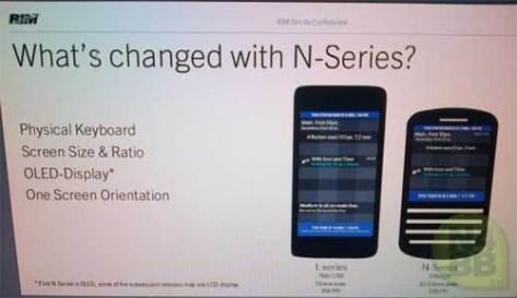 Опубликованы характеристики первых смартфонов под ОС BlackBerry 10В Сеть «уплыли» спецификации новых смартфонов RIM, которые, как ожидается, будут работать на новой ОС BlackBerry 10. Первое устройство получит имя BlackBerry L-серии. Аппарат представляет собой сенсорный моноблок с OLED-дисплеем (1280х768 точек и плотностью 356ppi). О диагонали пока ничего неизвестно, однако, по слухам, ширина его будет в районе 55 мм.