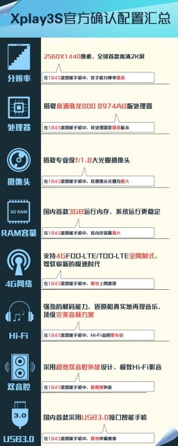 Опубликованы официальные спецификации Vivo Xplay 3S с 2K HD дисплеемКитайская компания BBK опубликовала тизерное изображение со списком технических характеристик своего будущего флагманского смартфона Vivo Xplay 3S.