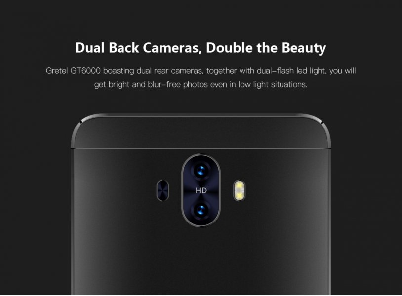 Бренд Gretel объявил о начале приема предварительных заказов на смартфон GT6000 с аккумулятором на 6000 мАч и двойной основной камерой. С 22 мая 2017 года предзаказать Gretel GT6000 у онлайн-ритейлеров AliExpress, Gearbest, и TOMTOP можно всего за $109.99. Немного позже смартфона станет доступен для покупки в магазинах Amazon и eBay.