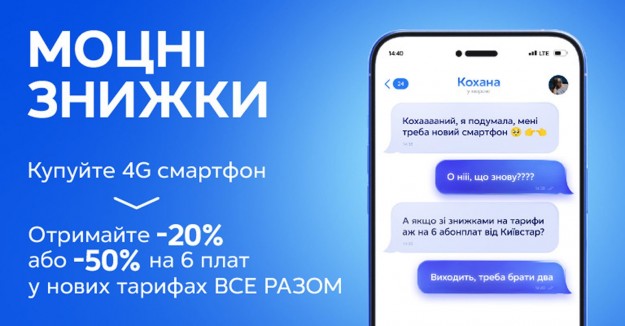 З 14 серпня 2025 року абоненти Київстар можуть отримати до 50% знижки на деякі тарифи на пів року.