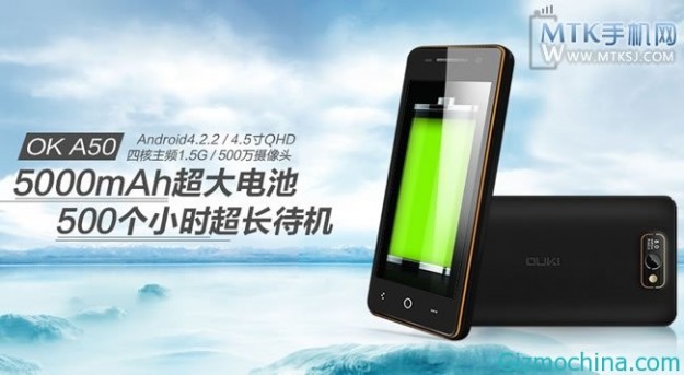 OUKI OK A50 — Android-смартфон с аккумулятором на 5000 мАчКитайская компания OUKI анонсировала смартфон OK A50, главной особенностью которого является батарея емкостью 5000 мАч.