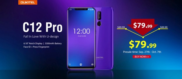 OUKITEL C12 Pro до 7 октября будет продаваться на Aliexpress за $79.99Oukitel в прошлом месяце не так давно представила смартфон Oukitel C12 Pro. Oukitel C12 Pro оснащен дисплеем диагональю 6,18 дюйма разрешением 720 х 1512 пикселей с соотношением сторон 19:9 и вырезом в верхней части. Емкость аккумулятора составляет 3300 мАч.