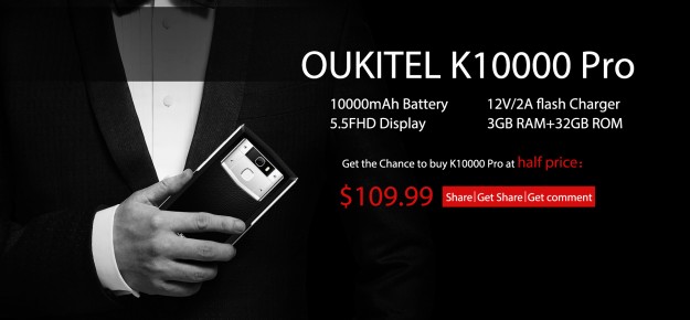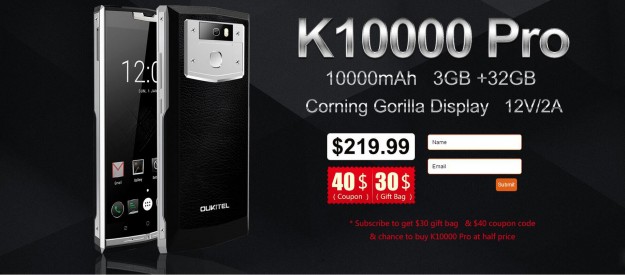 Напомним, OUKITEL K10000 Pro поступит в продажу в начале июня по цене $219.99, но для предзаказа он будет доступен со скидкой и подарками в качестве дополнительного бонуса. Так, например, среди всех, кто оформит подписку на смартфон на официальном сайте OUKITEL c 16 по 31 мая 2017 года, производитель каждый день будет выбирать десять счастливчиков, которым K10000 Pro достанется со скидкой в 50% - за $109.99. Кроме того, каждый подписчик гарантировано получит скидочный купон на $40 и подарки на сумму $30. Страница заказа: http://www.oukitel.com/advance.html