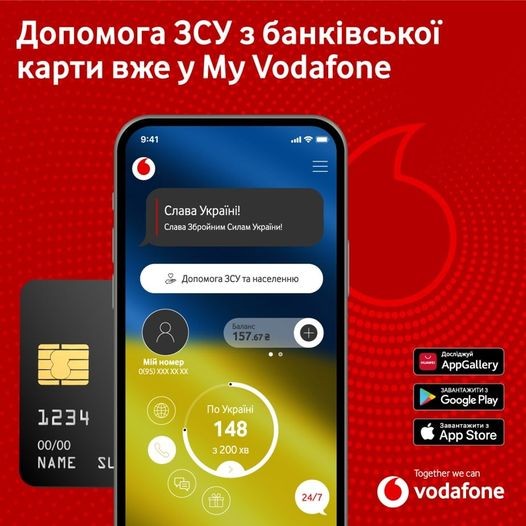 Підтримати Збройні Сили України з додатком My Vodafone стало ще простішеУ Vodafone додали можливість переказу коштів з банківської картки.