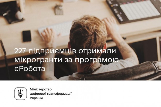 Перші 227 підприємців отримали мікрогранти за програмою єРоботаЗ 1 липня запустили програму єРобота, де всі охочі можуть подати заявку на порталі Дія, щоб отримати грант від держави на розвиток бізнесу. За кошти можна буде придбати обладнання, закупити сировину або оплатити оренду приміщення.