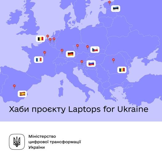 Перші хаби збору техніки для українців встановлено в ЄвропіВ європейських містах запрацювали перші 11 хабів збору техніки для постраждалих від війни українців у межах ініціативи Laptops for Ukraine. Будь-яка європейська соціально відповідальна компанія може взяти участь у зборі ноутбуків, планшетів, смартфонів для українських шкіл, лікарень, державних адміністрацій та інших установ, які постраждали від збройної агресії рф.
