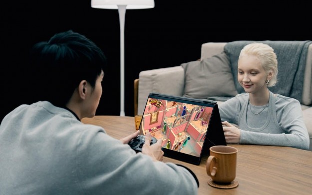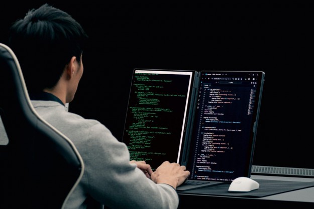 У режимі спільної роботи Duo розкривається на 180°, орієнтуючи кожен екран до учасників наради для максимально зручної взаємодії у великих групах. У режимі книги обидва екрани переходять у вертикальну орієнтацію. Це ідеальне рішення для вебсерфінгу та програмування, де важливо бачити великі обсяги інформації без зайвого прокручування.