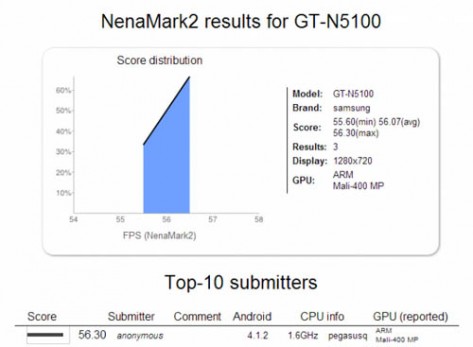 Первая информация о 7-дюймовом планшете Samsung Galaxy NoteБлагодаря тестеру NenaMark мы с вами имеем возможность ознакомиться с особенностями пока еще не представленного планшета Samsung Galaxy Note с диагональю дисплея 7 дюймов. Кроме того, что планшет оснащен 7-дюймовым дисплеем, известно также его разрешение - 1280х800 точек.