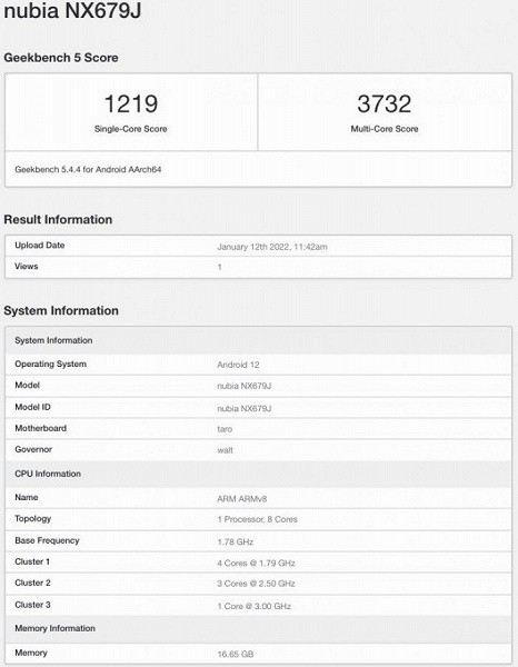 Первый смартфон со Snapdragon 8 Gen 1 протестировали в GeekbenchЭто игровая модель В базе данных бенчмарка Geekbench засветился смартфон Nubia с каталожным номером NX679J. Ожидается, что под этим обозначением скрывается будущий игровой флагман Nubia Red Magic 7. Он станет первым в мире смартфоном на базе Snapdragon 8 Gen и с 18 ГБ оперативной памяти.