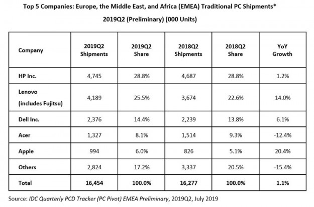 Рынок персональных компьютеров в регионе EMEA (Европа, включая Россию, Ближний Восток и Африка) во втором квартале текущего года показал незначительный рост. Об этом свидетельствую данные, опубликованные компанией International Data Corporation (IDC).