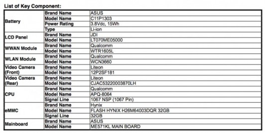 Новый 7-дюймовый планшет имеет разрешение дисплея 1080х1920 пикселей, он оснащен процессором семейства Qualcomm Snapdragon S4 Pro, графикой Adreno 320, 2 ГБ оперативной памяти и 32 ГБ встроенной, а также 5-мегапиксельной основной камерой и 1.3-мегапиксельной фронтальной, батареей емкостью 3950 мАч. Есть также поддержка NFC и LTE-сетей.
