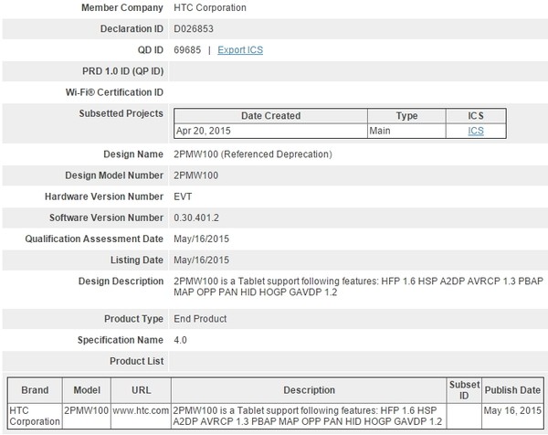 Планшет HTC H7 прошел сертификацию Bluetooth SIGПланшет компании HTC под кодовым названием H7, о котором впервые на прошлой неделе упомянул китайский «мастер утечек» UpLeaks, прошел сертификацию организации Bluetooth SIG, что указывает на приближающийся его анонс.