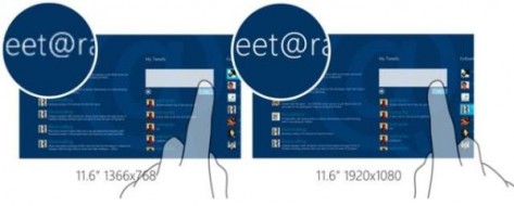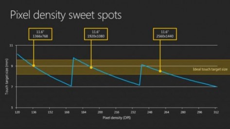 Софтверный гигант рассказал о своих намерениях в официальном блоге Building Windows 8. Как сообщается, новая мобильная версия платформы будет поддерживать дисплеи трех разрешений: стандартного (1366x768), Full HD (1920x1080), а также quad-XGA (2560x1440). С учетом того, что дисплеи будут выпускаться в двух физических размерах — 10,1 и 11,6 дюйма, плотность пикселей получается очень даже неплохой. В частности, для 10,1-дюймовой панели с матрицей quad-XGA этот показатель составит 291dpi, а значит, изображение не будет расплываться даже при просмотре вплотную.