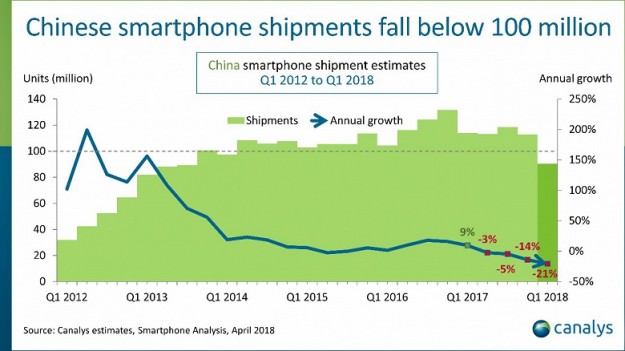 По подсчетам Canalys, китайский рынок смартфонов за год сократился на 21%Вслед за аналитиками Counterpoint свой отчет о ситуации на рынке смартфонов в Китае представили специалисты аналитической компании Canalys. Они согласны с коллегами в том, что китайский рынок смартфонов сократился в годовом выражении. Более того, если в Counterpoint оценивают сокращение в 8%, то эксперты Canalys говорят, что рынок уменьшился на 21%.
