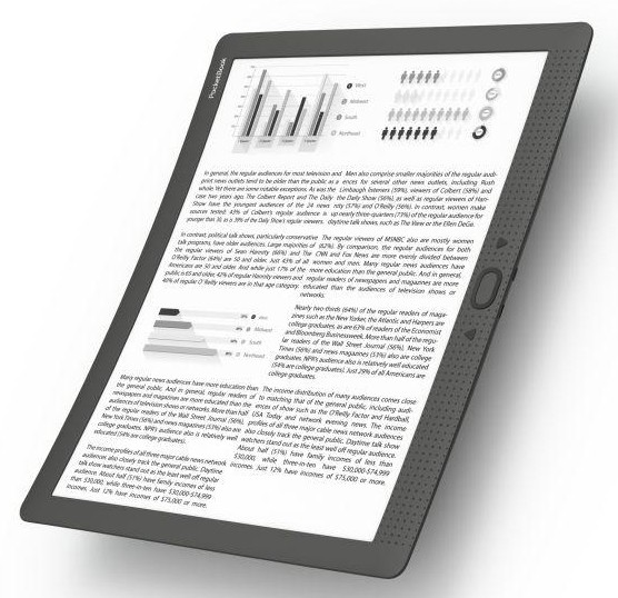 PocketBook CAD Reader Flex - прототип гибкого устройства толщиной 6,5 ммPocketBook представляет прототип PocketBook CAD Reader Flex – высокотехнологичное устройство в уникальном гибком корпусе для профессионального использования. Прототип новой модели линейки CAD Reader впервые будет представлен 2-4 декабря в Лас-Вегасе на всемирной выставке Autodesk University 2014.