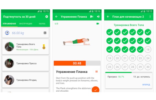 Приложение «Фитнес-план 30 дней» разработано зарубежными специалистами и фитнес тренерами. Однако, что положительно, оно поддерживает русский и украинский язык. Редактор нашего портала лично испробовал этот софт на себе и его прогресс очевиден для остальных. Так, что устанавливаем и пользуется ежедневно. Без особых нагрузок можно не только мышцы подкачать, но и сбросить лишние 3-5 килограмм.