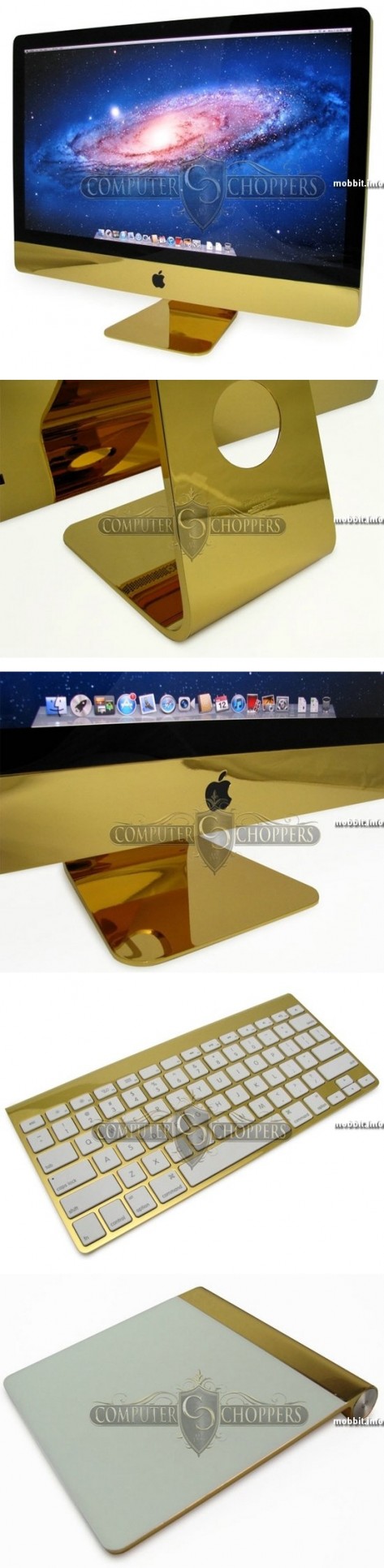 Macbook Pro, выполненный в презренном металле, мы с вами уже видели, а теперь его создатель, компания Computer Choppers, предлагает миру очередного золотого тельца. На этот раз предметом роскоши выступает 27-дюймовый iMac – его поверхность покрыта 24-каратным золотом. Клавиатура здесь соответствующая, Magic Trackpad – тоже. Но о золотой мыши почему-то ни слова. Стоимость этого ювелирного изделия колеблется в диапазоне от 7500 до 10000 долларов в зависимости от «начинки».