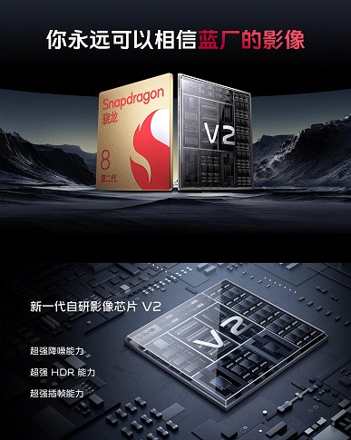 Vivo X Fold2 построен на однокристальной платформе Qualcomm Snapdragon 8 Gen 2, оснащен оперативной памятью LPDDR5X и флеш-памятью UFS 4.0. ISP платформы дополнен чипом Vivo V2, призванным повысить качество съемки. Что же касается подсистемы охлаждения, то только площадь испарительной камеры составляет 2558 мм2.