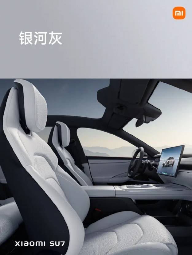 Xiaomi SU7 предлагает три цвета салона: Galaxy Grey, Twilight Red и Obsidian Black. Седан получил окна и крышу суммарной площадью 5,35 кв. м. Кроме того, в автомобиле предусмотрены физические кнопки, классический руль, спортивные сиденья, динамическое окружающее освещение и аудиосистема Dolby.