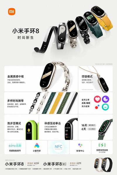 Представлен Xiaomi Mi Band 8 — не фитнес-браслет, но модный аксессуарXiaomi сегодня официально представила Mi Band 8 (он же Xiaomi Smart Band 8) — теперь это не просто фитнес-браслет, а настоящий модный аксессуар. Компания предлагает носить его на шее.