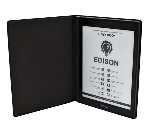 Корпус в металлическом исполнении делает устройство довольно устойчивым к вызовам внешней среды, при этом экран ридера защищен стеклом повышенной прочности от известного японского производителя Asahi. ONYX BOOX Edison поставляется в комплекте с удобным и эргономичным защитным чехлом, имеющим кнопки листания, при закрытии которого устройство автоматически переходит в спящий режим. Несмотря на внушительную диагональ экрана, корпус ридера относительно тонок, что делает устройство довольно компактным.