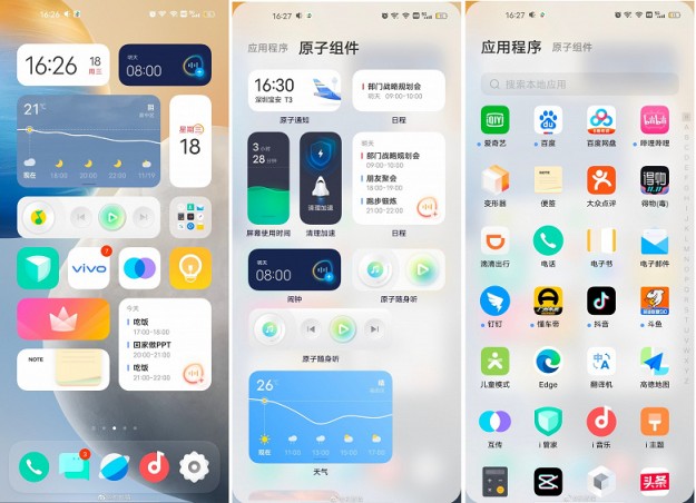 OriginOS предлагает переосмысленную систему виджетов, расширенную систему жестов, оптимизацию памяти и совершенно новую визуальную составляющую. При создании виджетов OriginOS авторы вдохновлялись классической китайской головоломкой, которая у нас известна под названием «Пятнашки». Домашний экран легко настроить под себя, даже если на нём есть несколько виджетов несоответствующих размеров. При нажатии на виджет он расширяется, чтобы отобразить дополнительную информацию и элементы управления. Nano Alerts — новая функция, которая показывает уведомления из приложения в его виджете.