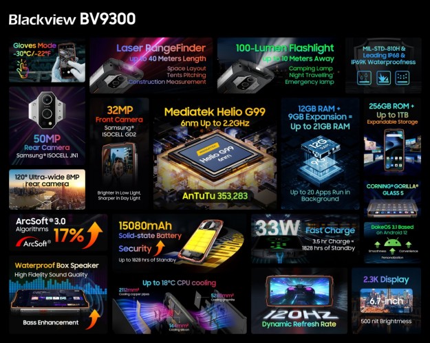 Представлено Blackview BV9300 - флагман в захищеному корпусі: лазерний далекомір, Helio G99, 15080 мАг