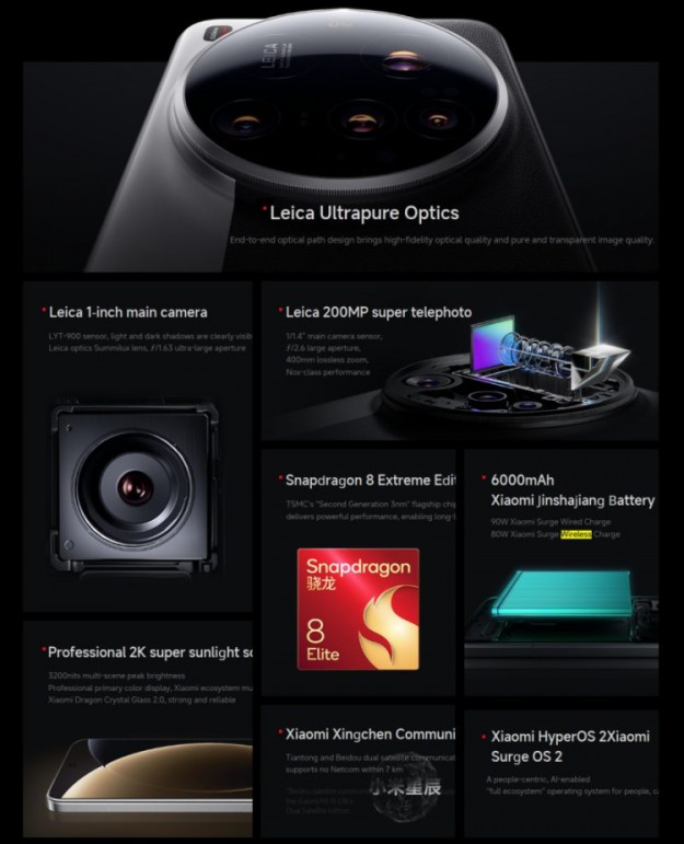 Представлено флагманський смартфон Xiaomi 15 Ultra: 200-МП камера Leica, 6000 мАг, 90 Вт, IP68 і екран 2К