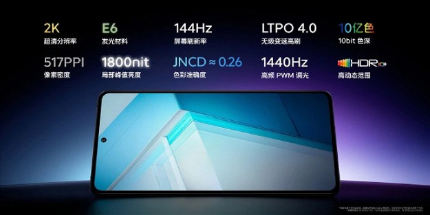 iQOO 11s отримав екран OLED Samsung останнього покоління E6 з роздільною здатністю 2К і кадровою частотою 144 Гц. Максимальна яскравість становить 1800 кд/кв.м, частота регулювання ШІМ - 1440 Гц.