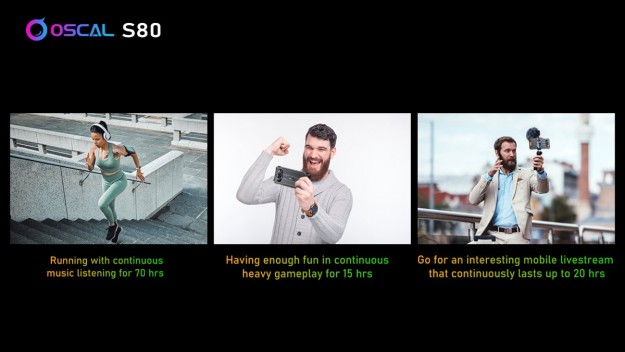 Oscal S80 постачається з акумулятором ємністю 13 000 мАг, якого цілком достатньо для щоденного мультимедійного задоволення: грати в ігри протягом 15 годин, переглядати прямі трансляції протягом 20 годин і слухати музику протягом 70 годин.