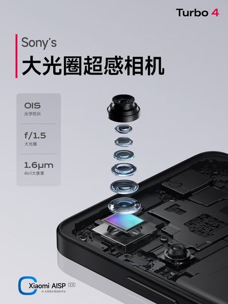Особливістю дизайну Redmi Turbo 4 стала система підсвічування, вбудована в блок основної камери: два світлодіодні кільця оперізують об'єктиви, світяться різними кольорами і можуть виконувати різні функції - виступати в ролі індикатора подій, блимати в такт музики або інформувати про зарядку батареї.