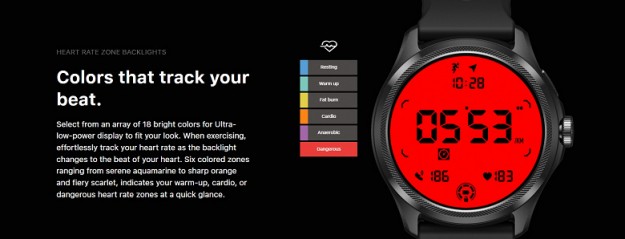 Есть у этого экрана и еще как минимум одна полезная и оригинальная функция. Во время бега (возможно, и других тренировок) подсветка дисплея меняет цвет в зависимости от того, в какой пульсовой зоне находится пользователь. Это очень удобно.
