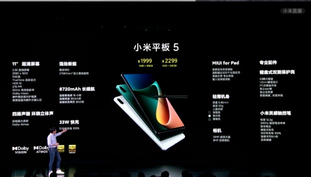 Xiaomi Mi Pad 5 Pro отличается аккумулятором 8600 мА·ч с быстрой зарядкой мощностью 67 Вт, восемью динамиками Dolby Atmos, двойными камерами 50 и 13 Мп, а также 5 и 8 Мп. Аппаратной основой стала SoC Qualcomm Snapdragon 870.