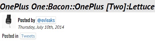 Преемник флагмана OnePlus One уже в разработкеИзвестный своими публикациями о неанонсированных устройствах twitter-аккаунт @evleaks поведал о разработке китайской компанией OnePlus преемника нашумевшего флагманского смартфона OnePlus One, представленного в апреле этого года и продающегося на сегодняшний день ограниченным тиражом.