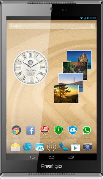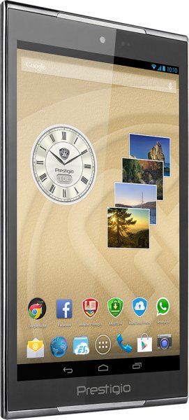 Девайс оснащен 8-дюймовым IPS-дисплеем с разрешением 1280x800 пикселей, 2-ядерным процессором Intel Atom Z2580 с тактовой частотой до 2 ГГц и графикой PowerVR SGX 544MP2, 1 ГБ оперативной памяти и 16 ГБ встроенной, которую можно расширить с помощью карт памяти формата microSD максимальным объемом до 32 ГБ. Еще бесплатных 200 ГБ пользователю доступны в облачном хранилище Prestigio MultiCloud. На борту новинки также аккумулятор емкостью 4000 мАч, 2Мп фронтальная камера и 5Мп основная с системой автофокусировки, беспроводные модули Wi-Fi 802.11b/g/n, 3G, Bluetooth 4.0 и GPS.