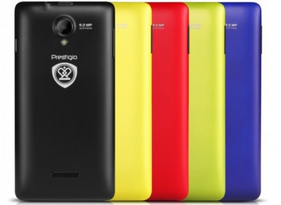 Prestigio MultiPhone 5450 DUO - смартфон 4 цветными панелями в комплектеСмартфон с диагональю экрана 4,5 дюйма оснащен производительным двухъядерным процессором Cortex A7 с тактовой частотой 1,2 ГГц, 512 МБ оперативной памяти и 4 ГБ встроенной.