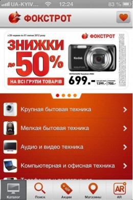 В новое приложение включен каталог товаров, разбитый по категориям. Чтобы посмотреть интересующий товар, нужно выбрать его из каталога. Также приложение высвечивает все действующие акции и специальные предложения торговой сети «Фокстрот. Техника для дома». Ко всему прочему, в приложении доступна функция интерактивной карты: она определяет место нахождения абонента и показывает ближайшие магазины. Еще одна полезная вещь – сканер штрих-кода. С его помощью можно сканировать штрих-код с любого товара сети «Фокстрот. Техника для дома» – сканер найдет о нем всю необходимую информацию. При сканировании штрих-кода, приложение покажет страницу с описанием товара. Это удобно делать в магазине, когда хочется узнать еще больше информации о товаре.