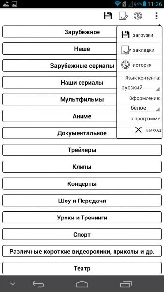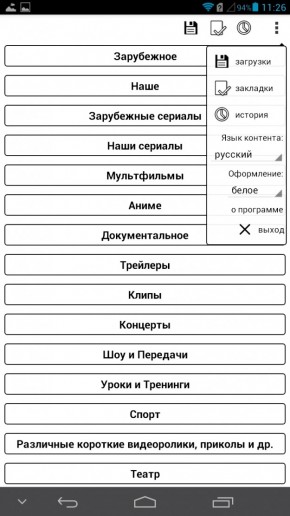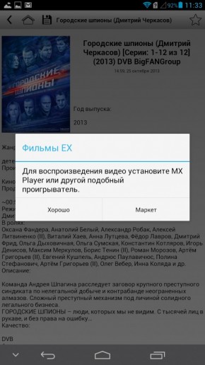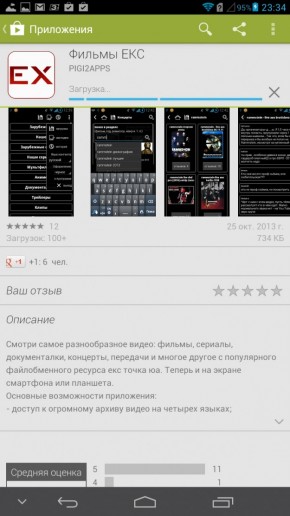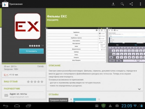 Приложение от видеохостинга - Фильмы EXПриложение для платформы Android, предоставляющее возможность смотреть и загружать видео с популярного ex.ua. Впрочем, только этим возможности его не ограничиваются. Данная статья подготовлена с использованием смартфона Huawei Ascend Mate, с детальными спецификациями которого можно ознакомиться здесь. Версия под iOS Предлагаю сразу же расставить все точки над «I» в вопросе существования альтернативного клиента под платформу iOS в App Store. Ничего подобного здесь нет. Однако, если вам, уважаемые читатели, хочется просматривать/загружать видео на iPad с упомянутого ресурса, сделать это можно при помощи одного из «загрузчиков», рассмотренных в этой статье. Добавлю еще то, что «штатный» браузер iOS этого делать не позволяет. Что же касается ex.ua и App Store, свое приложение под iOS для этого ресурса в магазине есть. Однако оно не для видео, а для МР3 и называется Music.ex.ua. Версия для планшета Приложение «Фильмы EX» отлично оптимизировано и под планшетные ПК, что доказывает серия иллюстраций далее. Интерфейс и возможности Объем дистрибутива невелик - чуть более 700 КБ. Распространяется приложение бесплатно. Таким образом, загрузка и установка много времени и усилий от пользователя не потребуют. Интерфейс достаточно прост. После того, как вы перейдете в меню, перед вами появится некая рубрикация видеоконтента, имеющегося на ex.ua: «Наши сериалы», «Зарубежные сериалы», «Документальное» и многое другое. Таким образом, в случае необходимости нет нужды, как говорится, «перелопачивать» весь массив данных. Стоит также отметить и то, что на главной странице поиск не предусмотрен, что на первый взгляд может расстроить. Тем не менее, не все так «худо и бедно» - поисковая строчка присутствует в каждом подменю этого каталога и работает, к слову, отлично. Возвращаясь на стартовую страницу, посмотрим, чем любопытны подменю, расположенные над каталогом, и отображенные в виде небольшой дискеты, прямоугольного окошка с галочкой, часов и иконки в виде вертикальной линии с трех точек. Первое из упомянутого - это«Загрузки». Здесь пользователь может настроить количество одновременных загрузок (до 10), а также приостановить сам процесс либо же очистить историю. Следующее - «Закладки». Оно любопытно тем, что здесь пользователь может не только хранить ссылки на понравившиеся фильмы или сериалы, но и имеет возможность задать функцию проверки новых серий. Согласитесь, для любителей сериалов эта «мелочь» - вещь вполне необходимая. Далее идет «История», где можно «напомнить» себе о последних открытых видео. Последним расположено некое техническое подменю. Перейдя сюда, пользователю также будет доступно все выше описанное. Кроме того, здесь же можно выбрать язык интерфейса (русский, украинский, английский, а также немецкий) плюс настроить оформление. Как выглядит последнее, смотрим далее на иллюстрациях. Пункты «О программе», а также «Выход», уверен, в дополнительном пояснении не нуждаются. Видео в каждой из рубрик расположены в виде плиток. Во время перехода по любой из них система предложит установить сначала MX Player. Страница с видео выглядит следующим образом. Пользователь всего в одно касание может добавить закладку, поставить на загрузку либо же активировать просмотр в потоковом режиме. Выводы и впечатления Стабильное в работе приложение с простым и п