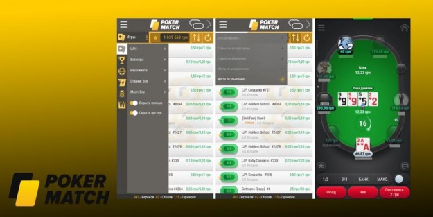 После выполнения этих действий откроется лобби с кэш-играми и турнирами. Обзор мобильного приложенияИгровой клиент PokerMatch имеет понятный интерфейс. Вы легко сориентируетесь в лобби, даже если никогда не играли в покер с телефона. После авторизации откроется доступ к следующим разделам: