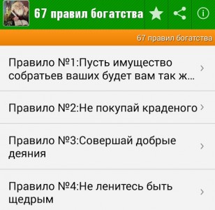 Ссылка на Google Play: https://play.google.com/store/apps/details?id=com.gludis.samypoleznisoveti.app Советы от евреев, богатство – набор рекомендация от нации, которая знает толк в зарабатывании денег. Полезные статьи из этого сборника помогут вам не просто стать богаче, но и научат правильно обращаться с деньгами во всех сферах человеческой жизни. При рейтинге 4.3 программу скачало почти 50 тысяч посетителей.