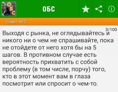 Ссылка на Google Play: https://play.google.com/store/apps/details?id=dev.belka.sovetevrei Бабушкины советы – не требующий в расшифровке набор полезных статей, которые накоплены годами нашим старшим поколением. Тут собрано больше 100 советов, которые можно применять во всех сферах нашей жизни, в быту, дома и работе. Рейтинг программы 4.2 и ее установили более 10 тысяч владельцев планшетов и смартфонов на Андроид.