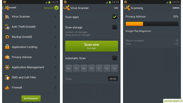 Avast Mobile Security & Antivirus – красочное ПО, которое быстро и точно может определить основные угрозы. У пользователей есть претензии к поиску новых вирусов, но часто встроенный брендмауэр решает все проблемы еще перед появлением угрозы. Из дополнительного функционала программы отметим: возможность очистки ОЗУ и памяти, сканер Wi-Fi и другие.