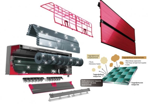Кроме автоматики в работе кондиционера участвуют и механические элементы техники. К механическим возможностям относятся: