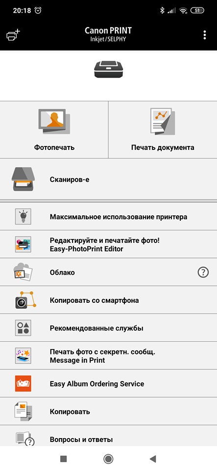 Мой ноутбук перестал видеть принтер по Wi-Fi Тестируя устройства в офисе, мы с подобным не сталкивались – все четыре модели принтеров работали стабильно при разных форматах нагрузок. Но вот один из коллег, который взял G3415 на неделю, на домашнюю работу, отметил в отчете, что через 2 дня после подключения, устройство у него вдруг перестало печатать. Методом проб и ошибок он выяснил, что проблема в роутере, у которого обновилось программное обеспечение. После того, как он переподключил принтер, проблема была устранена. Почему я не могу распечатать фотографии со своего смартфона, хотя беспроводной принтер система видит? Если у вас не получается распечатать фотографию либо текстовый документ с вашего смартфона Apple либо же аппарата, работающего под управлением Android OS, вы не установили фирменное приложение CANON PRINT Inkjet/SELPHY, необходимое для работы с принтерами CANON с мобильного устройства. Таким образом, изначально исправьте этот недочет. Под платформу Android загрузку выполняем отсюда, а под iOS отсюда. Нужно ли специальное приложение на смартфон для печати фотографий? Выше мы уже отвечали на этот вопрос. Для того чтобы пользователи могли печатать фотографии и текстовые документы со своего смартфона или планшета на Android либо iOS, необходимо вначале установить фирменное программное обеспечение CANON PRINT Inkjet/SELPHY. К слову, этот же софт позволяет удаленно сканировать, копировать, выполнять печать из облака. Удобно, если, к примеру, вы забыли дома какие-либо документы, а вам их нужно получить срочно. Можно выполнить удаленное сканирование, конечно же, если рядом с принтером будет человек, который подготовит документ для сканирования.