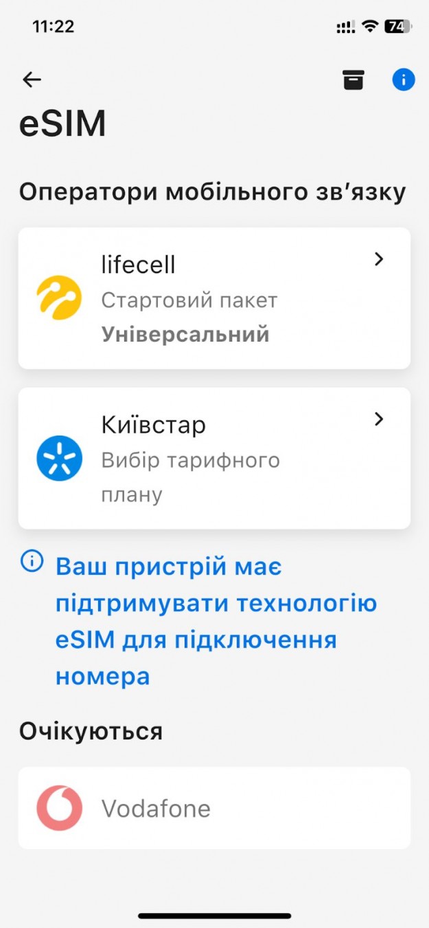 ПриватБанк запустив у Приват24 продаж eSIM мобільних операторів Kyivstar та lifecellПриватБанк запустив у Приват24 нову послугу - продаж цифрових SIM-карт мобільного зв'язку. Відтепер понад 13,5 мільйонів користувачів найбільш популярного мобільного банку можуть підключитися до Kyivstar та lifecell за декілька хвилин, оформивши eSIM прямо у застосунку.