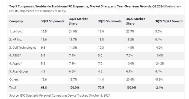 Згідно з даними аналітиків IDC, у третьому кварталі поточного року користувачі менш охоче купували комп'ютери Apple, ніж пристрої інших виробників, якщо говорити про лідерів і порівнювати з минулим роком.