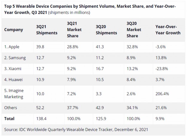 Сообщается, что поставки продуктов в обозначенных категориях растут, несмотря на глобальный дефицит электронных компонентов. Отгрузки за трёхмесячный период составили 138,4 млн штук, что на 9,9 % больше по сравнению с прошлогодним результатом (125,9 млн единиц). В категории аудиоустройств зафиксирован рост на 26,5 % в годовом исчислении: такие гаджеты заняли 64,7 % в общем объёме носимых продуктов, реализованных в третьем квартале текущего года. Ещё 34,7 % пришлось на гаджеты, предназначенные для ношения на запястье.