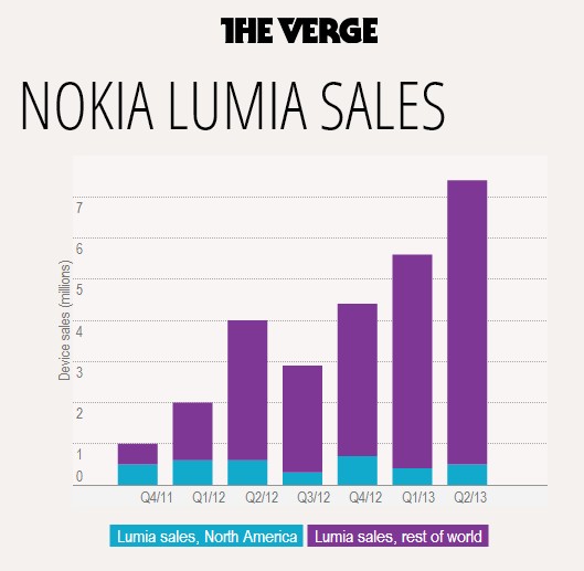 Продажи смартфонов Nokia Lumia бьют рекордыВлиятельное мировое издание Wall Street Journal сообщило, что финская компания Nokia в период с июля по сентябрь реализовала по меньшей мере 8 млн смартфонов линейки Lumia, работающих под управлением операционной системы Windows Phone.