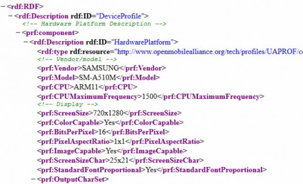 Профиль UAProf подтвердил HD-дисплей для обновленного Samsung Galaxy A5В профиле User Agent Profile на сайте компании Samsung был замечен не представленный еще официально смартфон с индексом SM-A510M, который, как ожидается, выйдет на рынок в качестве обновленной версии Galaxy A5.